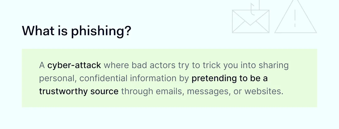 Phishing involves using emails to persuade readers to make dangerous decisions. Links and attachments direct users to malicious websites, putting data and network assets at risk.